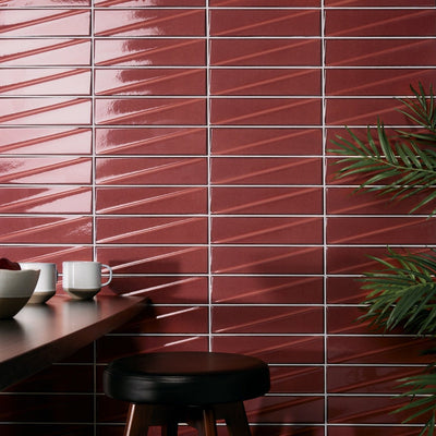 Axelle Ruby Red 3D Glossy Ceramic Subway Tile - 3x12