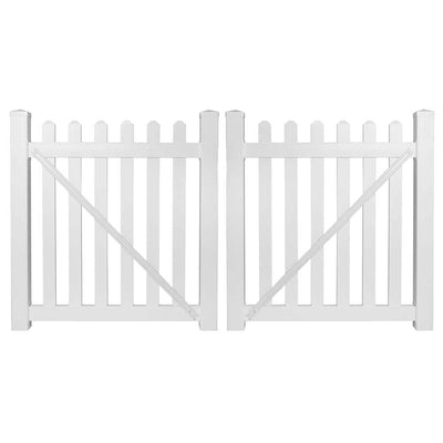 Weatherables Chelsea 10 ft. W x 4 ft. H White Vinyl Picket Fence Double Gate Kit Includes Gate Hardware