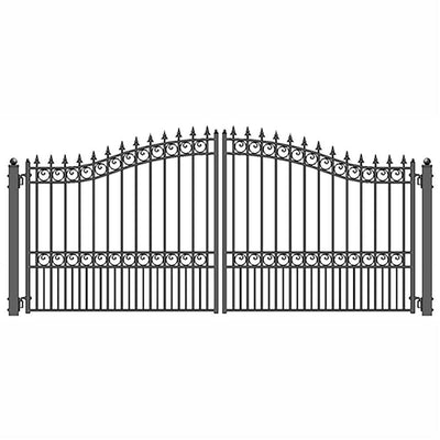 ALEKO Madrid 14 ft. x 6 ft. Black Steel Dual Driveway Fence Gate