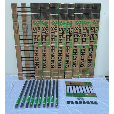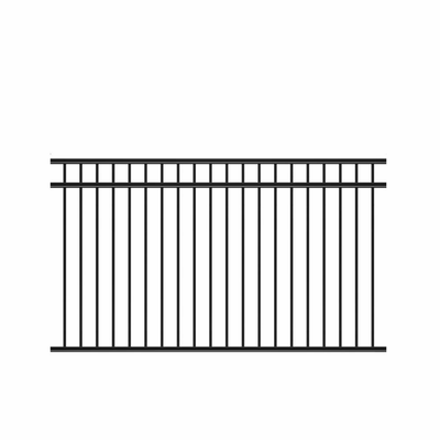2.67 ft. x 64 ft. Blk Ornamental Space Bar Flat Metal Fence Panel Kit (8 panels,Posts,brackets,Gate) AboveGround Install