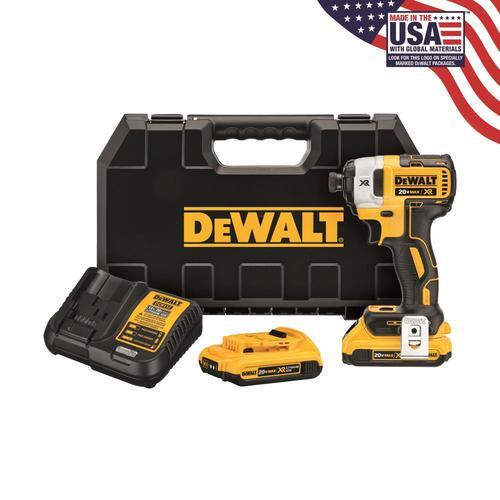 DEWALT built brushless motor and XR Li-ion batteries deliver more run time and capacity over standard units 3 speed settings for optimized application versatility Precision drive in speed 1 for precision applications and added control 3 LED lights with 20 second delay after trigger release, provide visibility without shadows One-handed loading 1/4-in hex chuck with easy grip sleeve, accepts 1-in bit tips Compact and lightweight design to fit into tight areas (6-mm shorter than the previous DCF886) Compact and lightweight design to fit into tight areas (2-mm shorter than previous model DCF886) Mide in USA with global materials