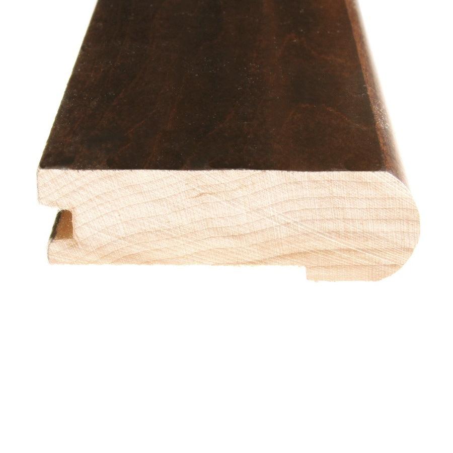 Flexco Truffle Maple stair nosing is designed to take the brunt of foot traffic while maintaining the beauty of the stairs The Truffle finish and top coat allow the woods natural beauty to shine through while offering a rich color to match wood flooring Prefinished with an environmentally friendly water-based low VOC polyurethane top coat Made from the finest solid hardwood available for lasting durability See flooring manufacturer guidelines for required underlayment Easily cut for custom finish Each stair nose is 2.75-in W x 0.75-in H x 78-in L Smooth finish for flawless transition to flooring and can be installed in both residential and commercial buildings "Pass-it-on" warranty could not be more simple, we will match the warranty provided by the hardwood flooring manufacturer on any project where our hardwood transitions are used