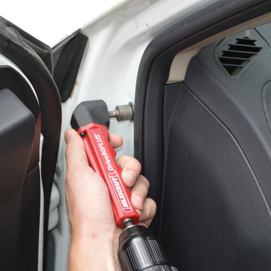 Ergonomic design - finger tip and flat backed handle for maximum comfort and control when drilling Newly engineered design - 1.5 In. reach and impact ready with new improved gears with integrated gear support for longer life and durability Magnetic 1/4 In. hex socket - accepts most 1/4 In. hex accessories and includes a Phillips driver bit Use with Milescraft stubby bits