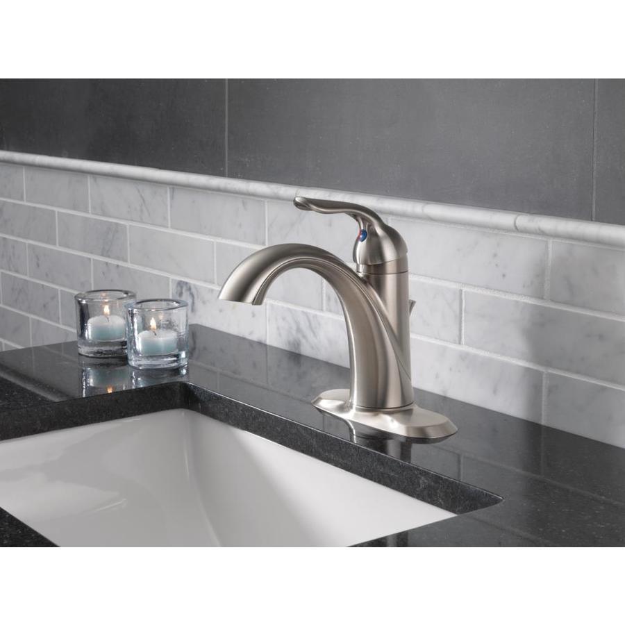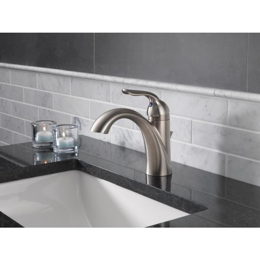 Delta Lahara Stainless 1-handle Single Hole/4-in Centerset WaterSense Bathroom Sink Faucet with Drain