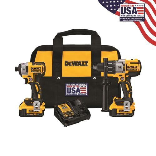 Kit includes DCD996 20V MAX XR 3-Speed 1/2-in Hammerdrill, DCF887 20V MAX XR 1/4-in Impact Driver, (2) DCB204 20V MAX XR High Capacity Li-Ion Batteries (4.0Ah), Charger, (2) Belt Hooks, 360 ° side handle and Contractor Bag