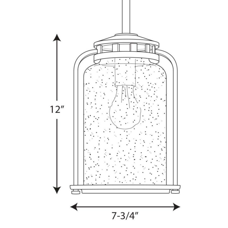 Antique bronze finish Clear seeded glass 7-3/4 -in diameter x 12 -in height Uses one 100 watt medium base Bulb (not included) Includes one 6 -in, four 12 -in stems and 8 -in of chain