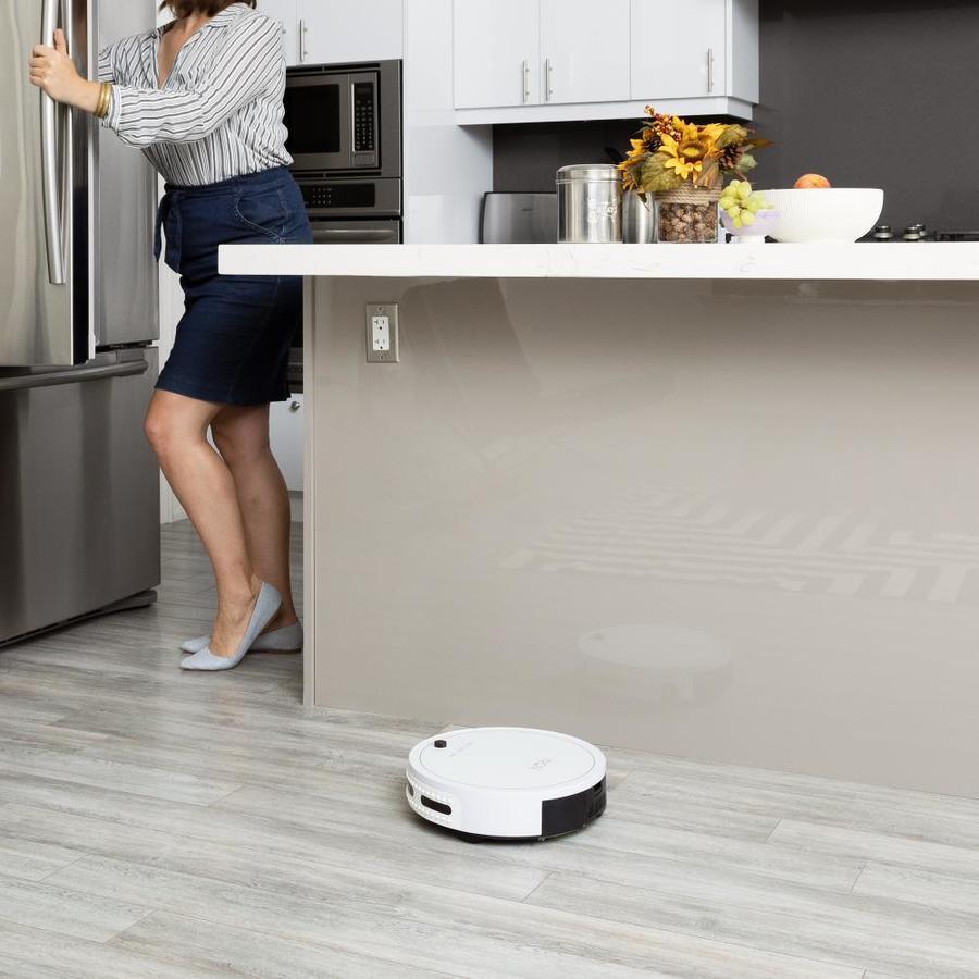 Sweeps, vacuums, mops, and filtrates all types of floors simultaneously Simple touchscreen features only 3 buttons for easy operation Modern, compact design easily cleans underneath beds and furniture with minimal sound output Washable dustbin can be quickly rinsed out or submerged underwater Back-to-back brushes double her sweeping power, and a TurboLift vacuum suctions away pet hair and dust bunnies Remote lets you schedule a custom cleaning routine so she starts up automatically Automatically finds her charging station when battery drops below 15% Concentrates on small spill areas by cleaning in a grid pattern 1-Year manufacturer's limited warranty on all parts (including the battery) and labor
