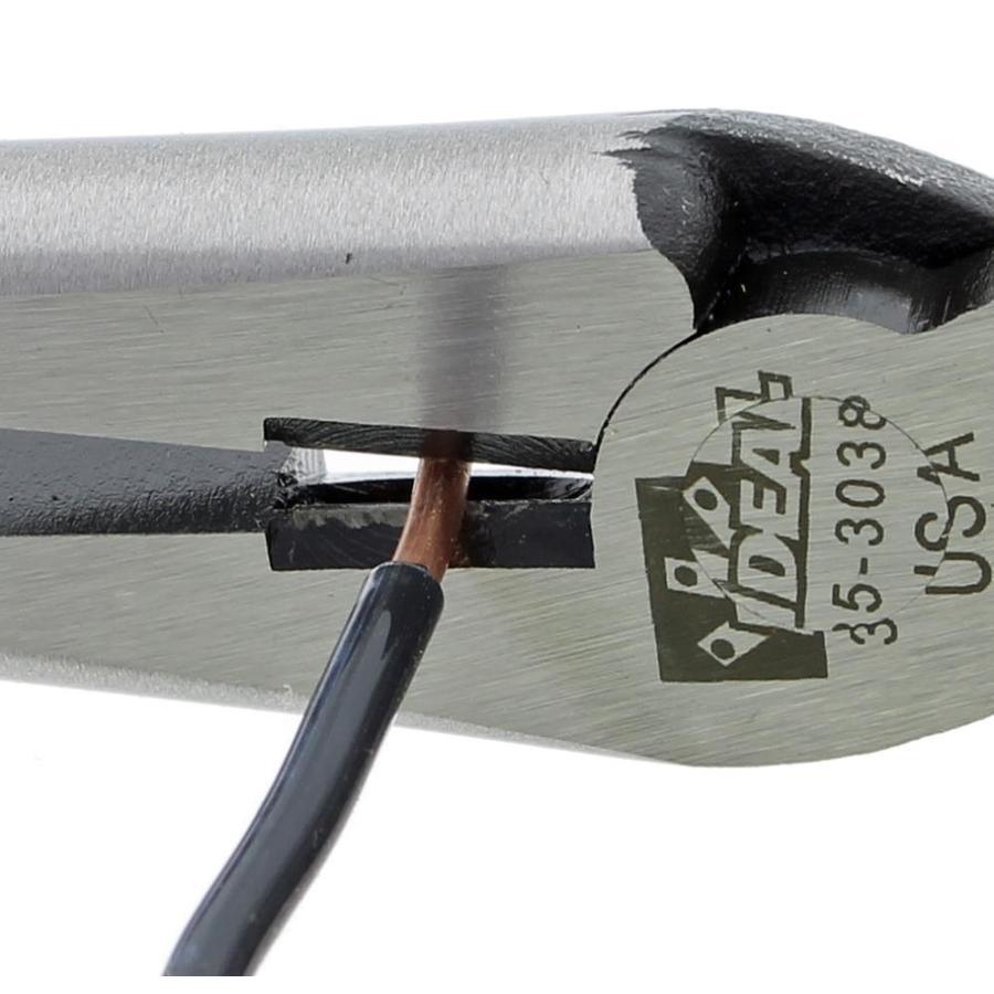Color coded smart-grip dual durometer grips with fast finding letter marker identification Drop-forged, high carbon steel construction Laser-hardened blades cut hardened wire, bolts and stainless steel wire Narrow profile head designed for working in tight areas Serrated jaws provide secure gripping surface Part of a full line of USA made IDEAL hand tools for professional electricians