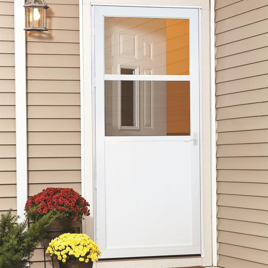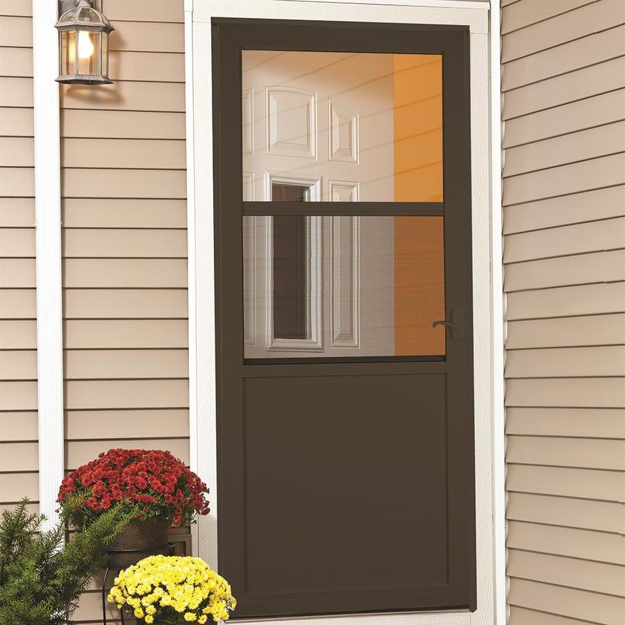Half screen is reversible allowing for top or bottom screen position to fit your lifestyle All metal door with heavy-duty aluminum frame and rigid steel kick panel stands up to life's wear and tear Decorative outside lever with inside lock Dependable closing with 1 color-matched adjustable speed closer Limited Lifetime warranty offers peace of mind for your investment Installation is easy with EasyHang® installation method Adjustable mounting rails means no cutting or guess work Bottom expander adjust for a tight seal