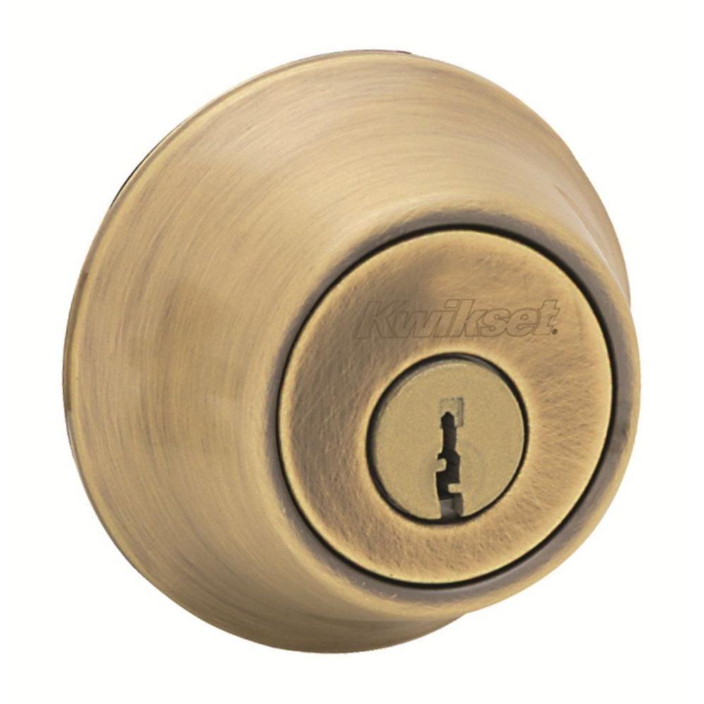 As a leading brand in the industry, Kwikset has been a trusted source of security for more than 60 years, known for its reliable protection, sophisticated style, and innovative technology. The 600 series, America's top-selling deadbolt, offers strong and affordable defense. The Antique Brass finish adds a warm touch with intricate accents that enhance the product's design. This double cylinder deadbolt requires a key to operate on both sides, making it ideal for exterior doors in need of enhanced security. It fits door thicknesses of 1-3/8 in. to 1-3/4 in. and has an adjustable latch to fit all standard door preparations. With ANSI/BHMA grade 3 security, it can also be paired with a keyed knob or lever (not included) for added protection. Installation is quick and easy with just a screwdriver, and it comes with a lifetime mechanical and finish warranty.