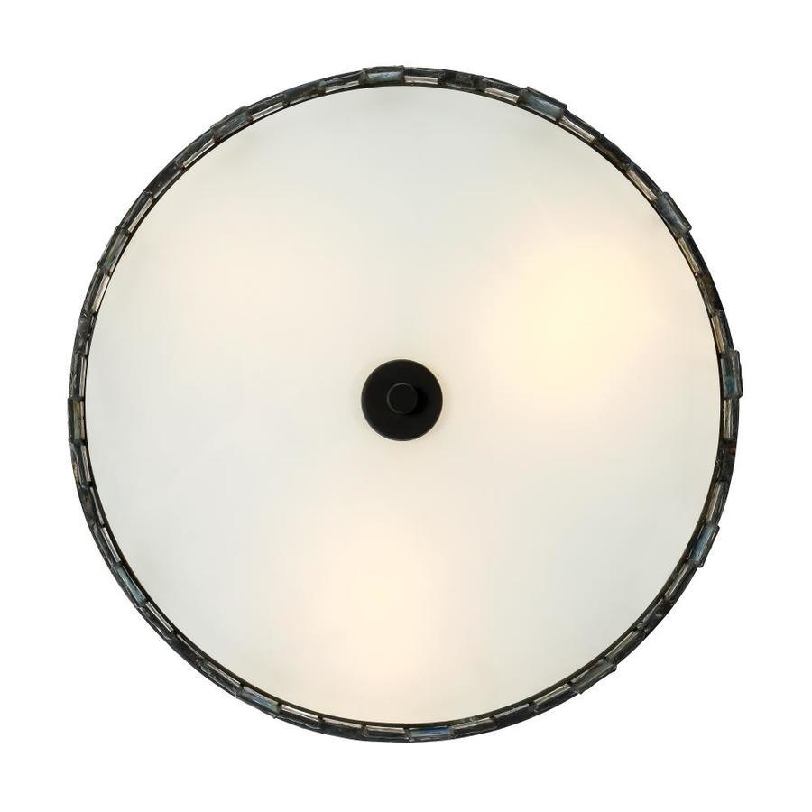 Features a hand-made Tiffany glass shade with a black finish base Uses three 60-watt max wattage medium base bulbs, not supplied (can be used with LED bulbs) Tool-free bulb replacement There is a 3-year warranty on finish and a 10-year warranty on electrical Flush mount fixtures add interest and depth all the while providing ambient illumination and decorative lighting ETL listed for damp location usage Mounting hardware and installation manual included(outlet box screws, crossbar, wire nuts) 6.5-In H x 14-in D