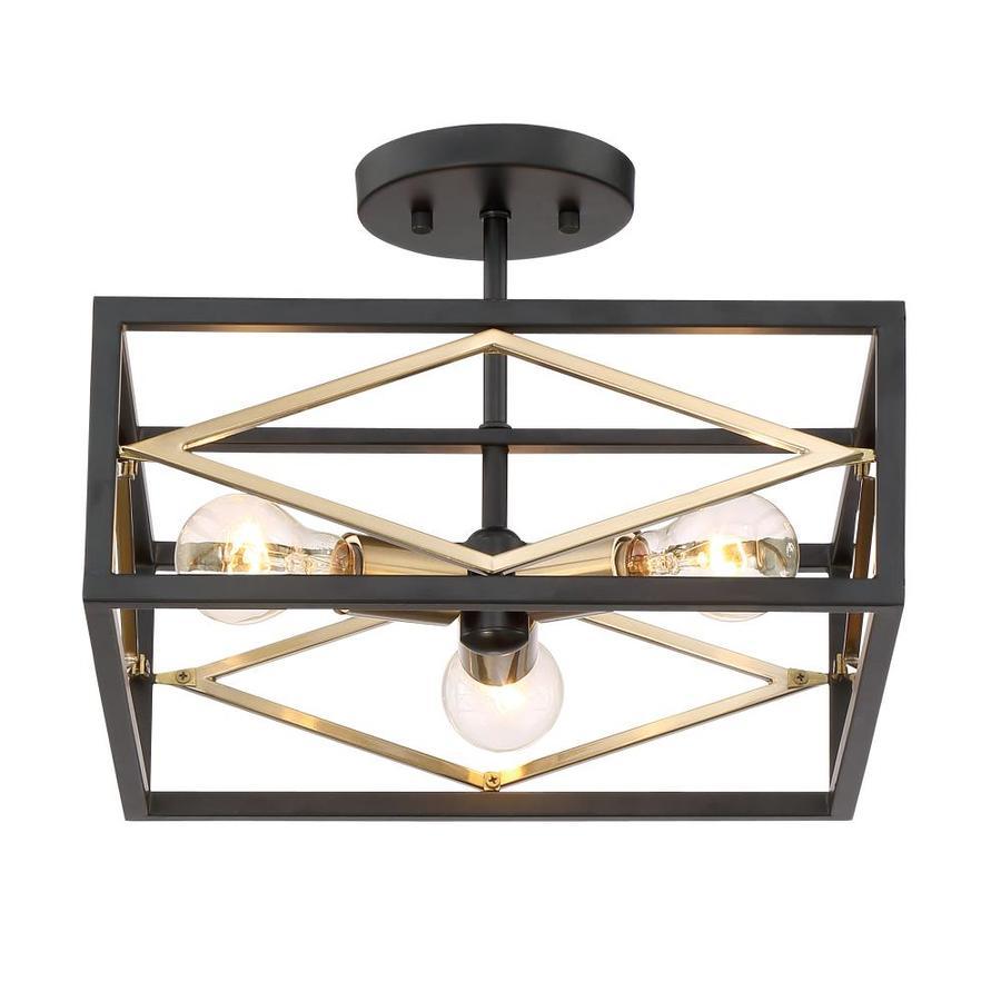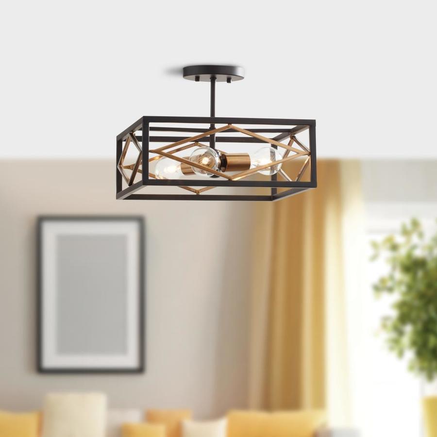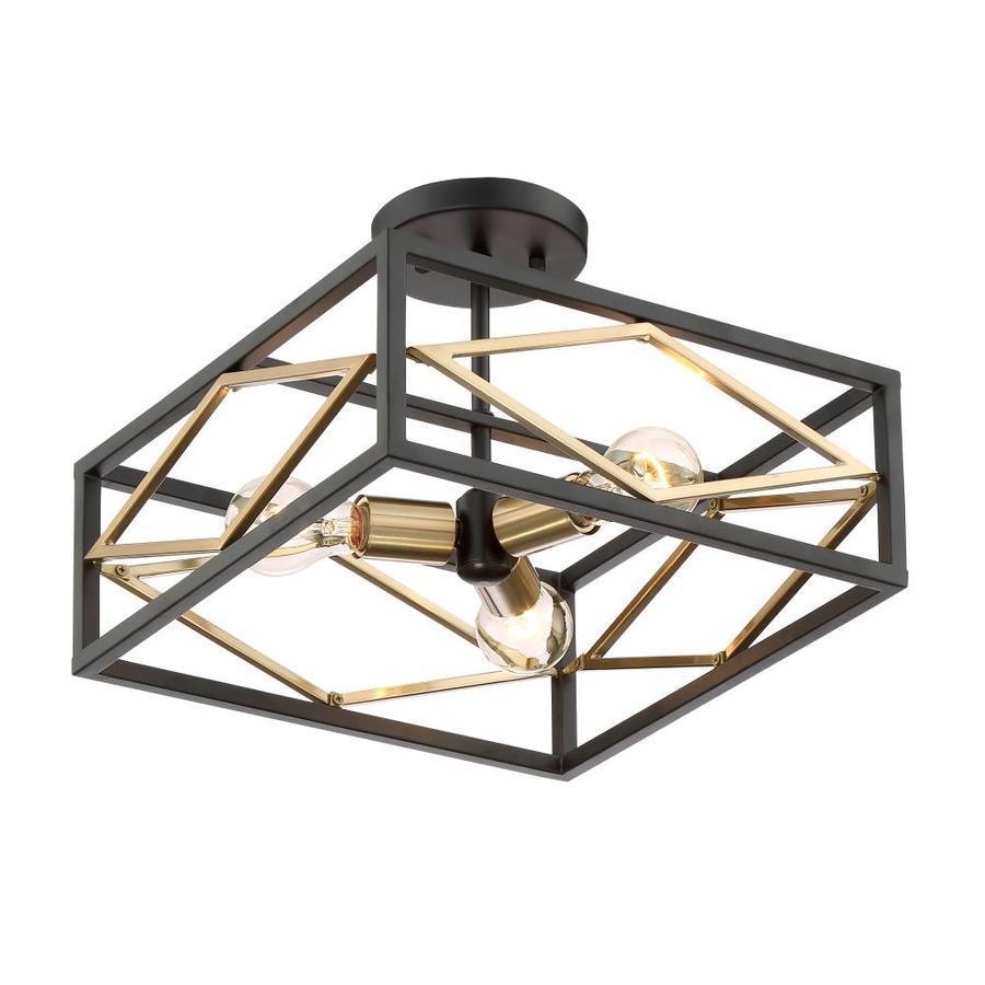 Features a rich black finish with gold accents Uses three 100 watt max wattage medium base bulbs, not supplied (can be used with LED bulbs) Complete the look of your room with the entire Platform collection - see related items There is a 3-year warranty on finish and a 10-year warranty on electrical Easy access bulb replacement Semi-flush mount fixtures add interest and depth all the while providing ambient illumination and decorative lighting Dimmable for desired illumination levels when used with dimmable bulbs ETL listed for damp location usage Mounting hardware and installation manual included(outlet box screws, crossbar, wire nuts)