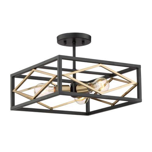 Quoizel Platform 14-in Black with Gold Modern/Contemporary Semi-flush Mount Light