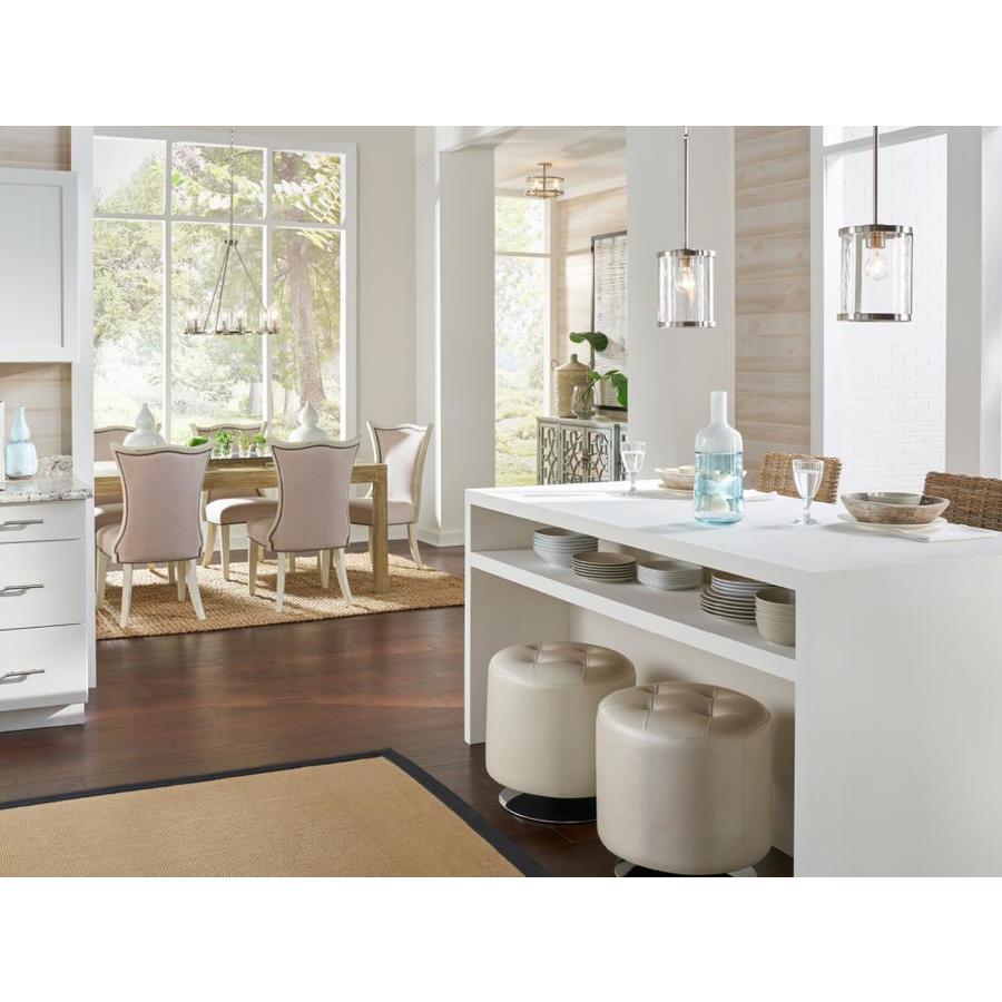 Brushed nickel finish chandelier from the Marita collection Includes 6 clear wave glass cup shades Requires six 60 watt candelabra based bulbs (sold separately) Fixture dimensions: 23.88-in diameter x 22.5-in H All mounting hardware and detailed instructions are included for an easy installation ETL safety listing demonstrates this product has met minimum requirements of widely accepted product safety standards Lights are dimmable, so you can create your desired ambiance Match with other Marita collection lighting for a stunning look