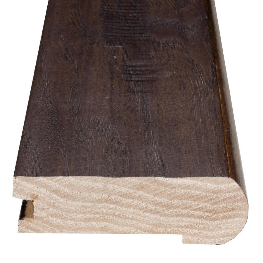 Flexco Highland Trail Hickory stair nosing is designed to take the brunt of foot traffic while maintaining the beauty of the stairs The Highland Trail finish and top coat allow the woods natural beauty to shine through while offering a rich color to match wood flooring Prefinished with an environmentally friendly water-based low VOC polyurethane top coat Made from the finest solid hardwood available for lasting durability See flooring manufacturer guidelines for required underlayment Easily cut for custom finish Each stair nose is 2.75-in W x 1-in H x 78-in L Smooth finish for flawless transition to flooring and can be installed in both residential and commercial buildings "Pass-it-on" warranty could not be more simple, we will match the warranty provided by the hardwood flooring manufacturer on any project where our hardwood transitions are used