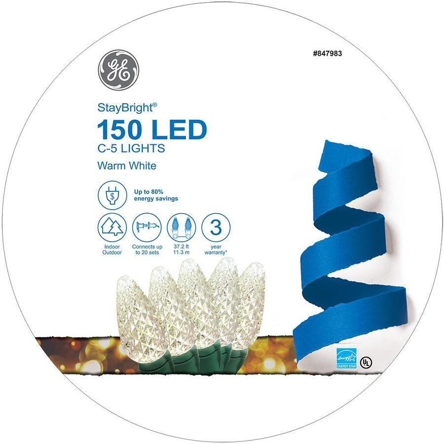 150-Count GE StayBright LED warm white C5 Christmas string lights
