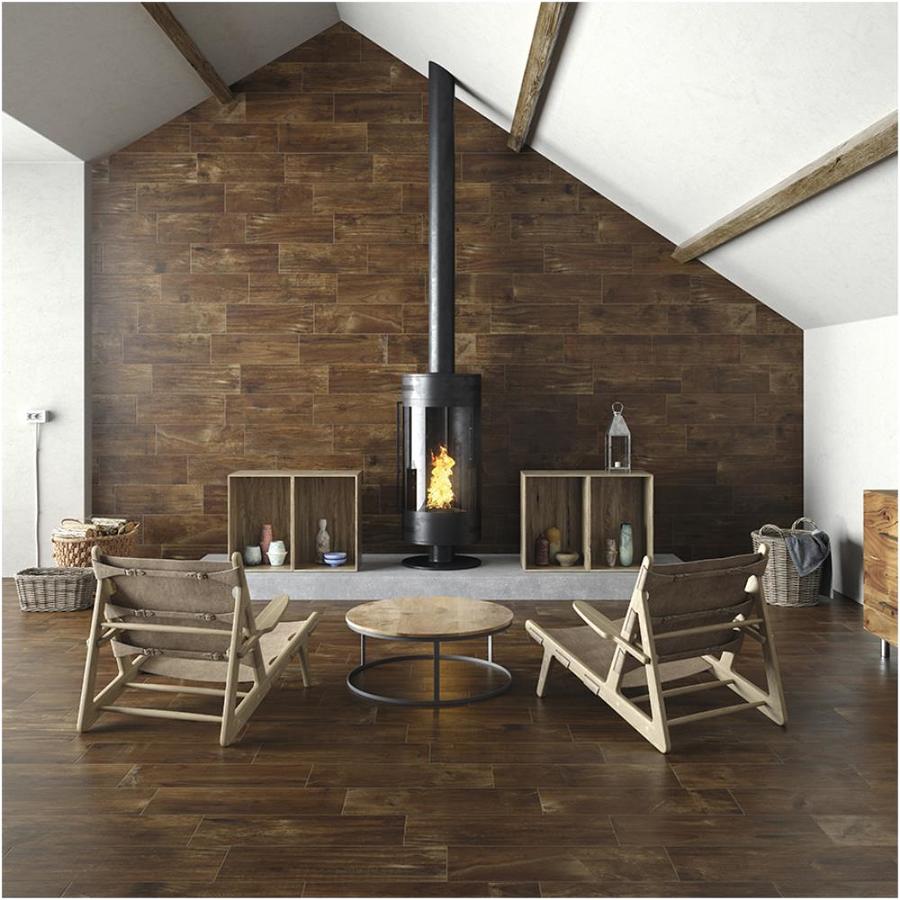 Glazed ceramic floor and wall tile from the Acadia brown collection is durable and easy to clean