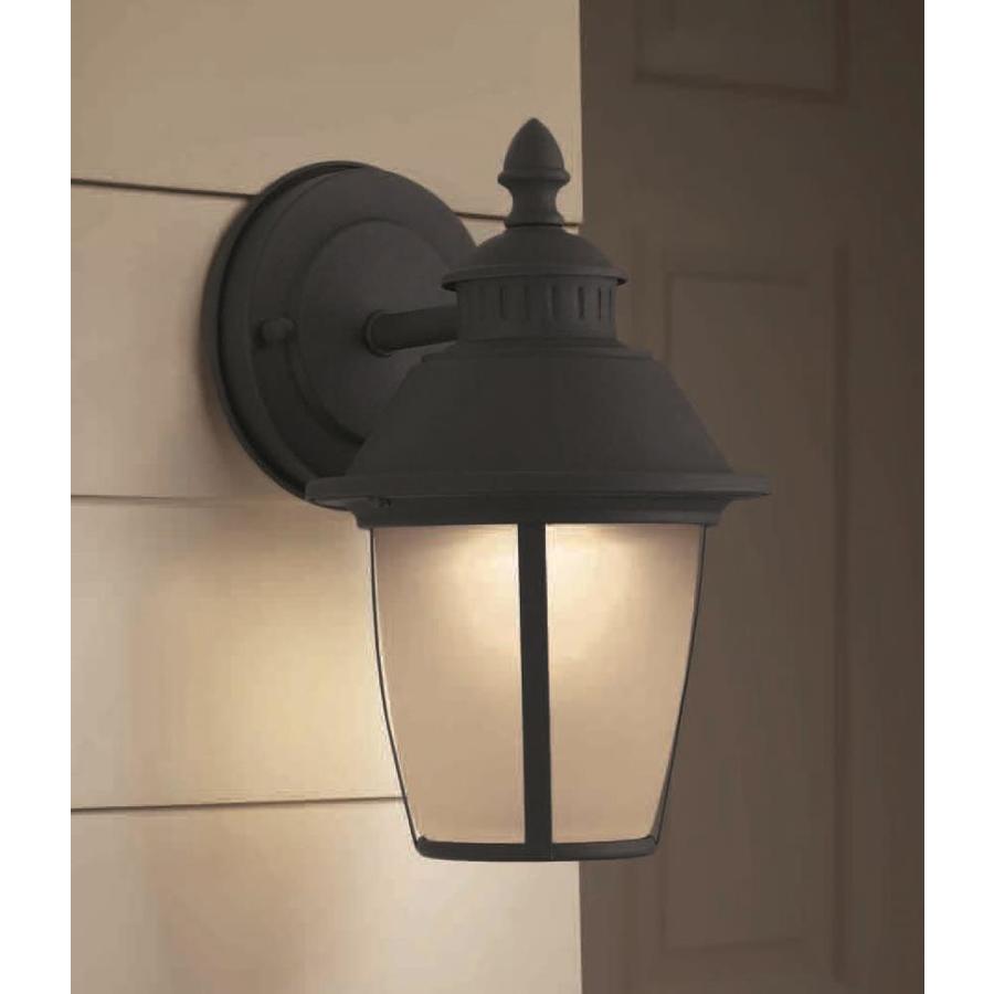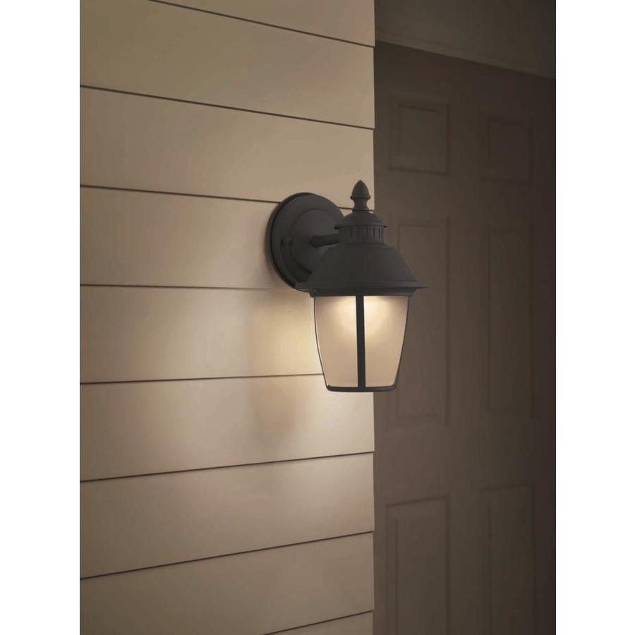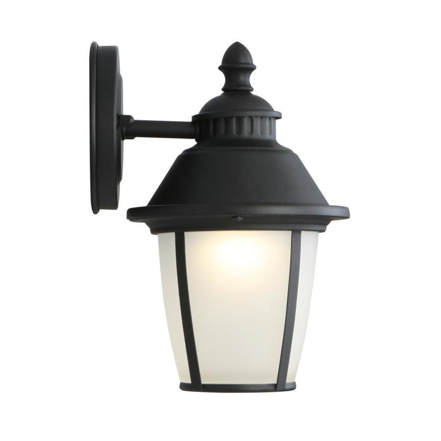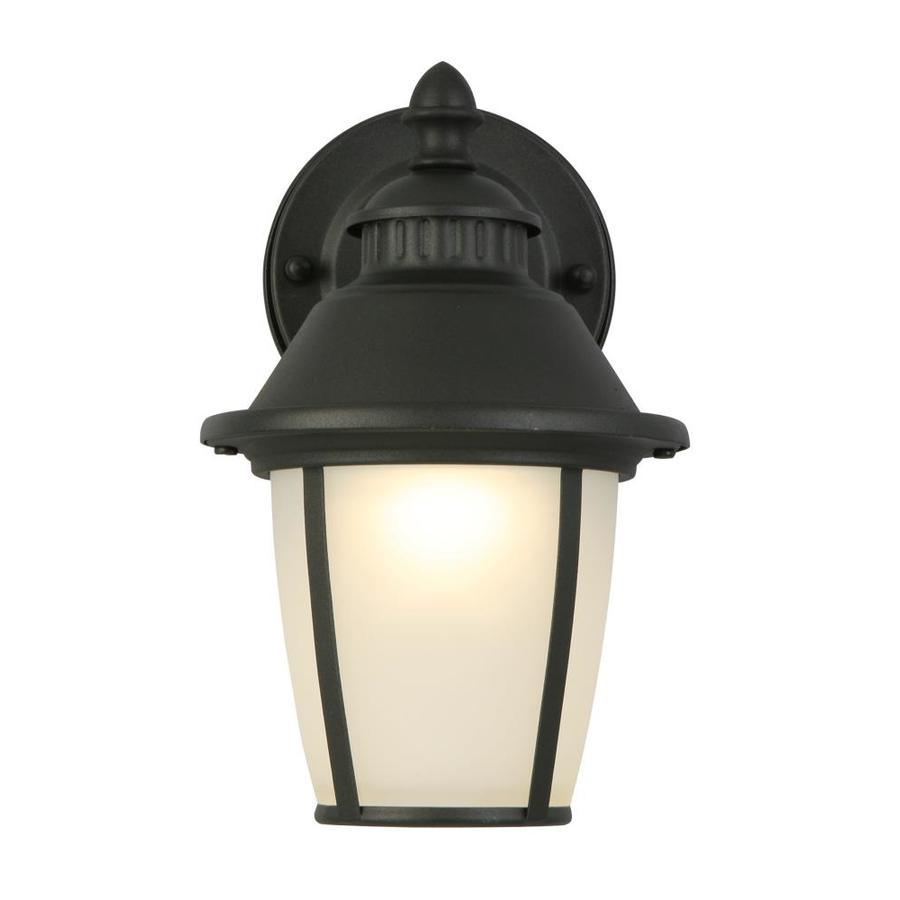 Matte black outdoor wall light enhances your home security Frosted flat glass shade allows for brightly illuminating your outdoors 8 watt integrated LED light source with 486 lm of bright light enhancing your homes security and at the same time being warm and inviting to friends and family Integrated LED light source uses less energy and lasts longer All mounting hardware and instructions are included for an easy installation 5.62-In W x 9.12-in H x 6.5-in D ETL safety listing demonstrates this product has met minimum requirements of widely accepted product safety standards Great for traditional style decor Wet location rated