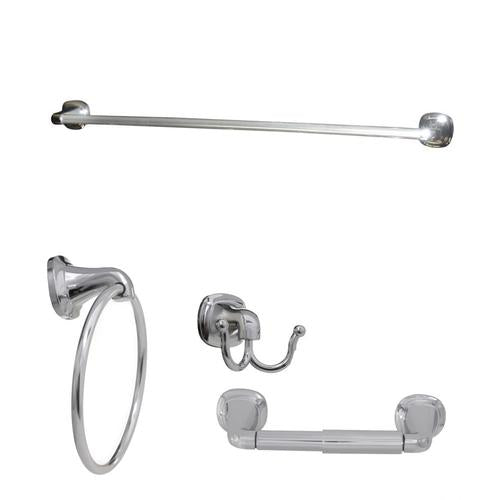 Set includes: 24 inch towel bar, toilet paper holder, towel ring and robe hook It is built from durable zinc aluminum with limited lifetime warranty Concealed mounting hardware is included to assist in a quick and clean installation Installation instructions included