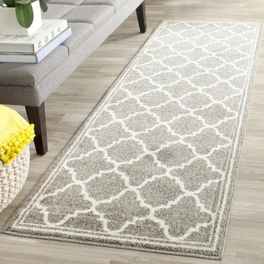 Coordinate indoor and outdoor living spaces with fashion-right Amherst all-weather rugs by Safavieh Beautiful cut pile Amherst rugs stand up to tough outdoor conditions with the aesthetics of indoor rugs Power loomed of long-wearing polypropylene Rug measures 2-ft-3-in x 13-ft Rug weight: 12 lbs Pile height: 0.25-in Vacuum regularly, spot clean with mild detergent Rug pad recommended Made in Turkey