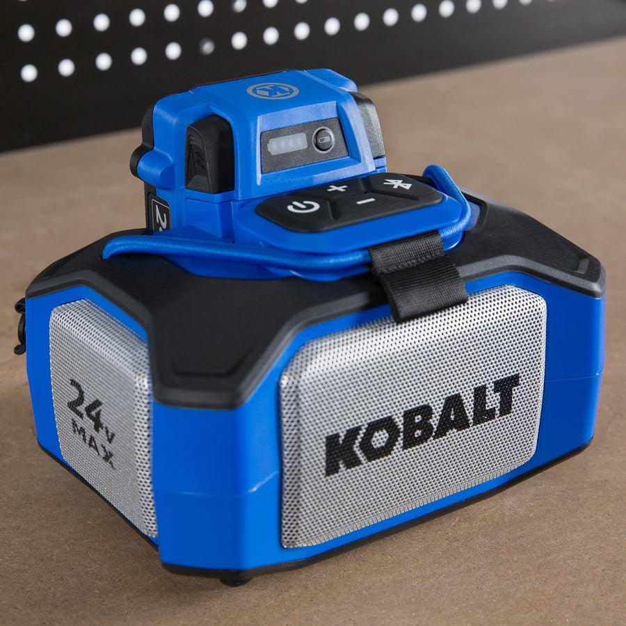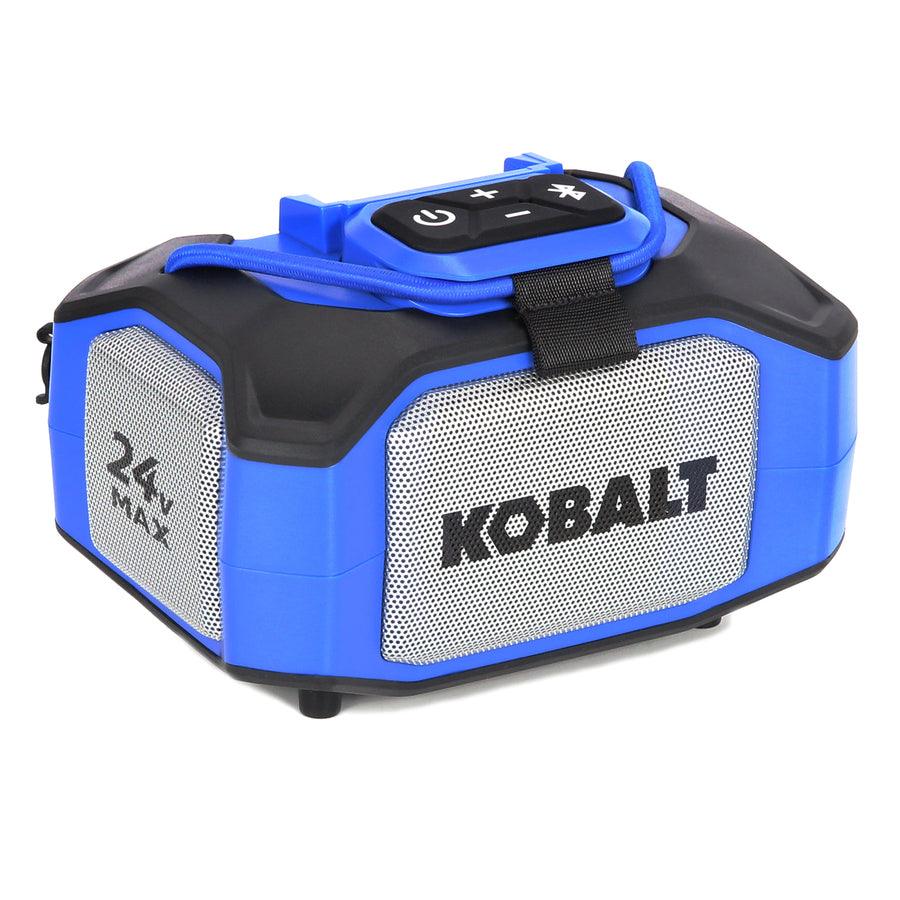 The Kobalt 24-volt max bluetooth speaker is rugged, yet compact, for portability USB port for charging cell phones or other electronic devices Auxiliary jack for direct connection Kobalt's 5-year warranty gives you peace of mind Compatible with all Kobalt 24-volt max batteries and chargers (sold separately)