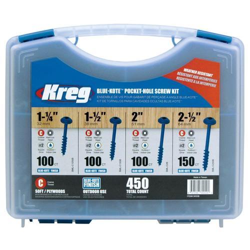 Weather-resistant screws for Kreg joinery Secured in a durable, easy-to-carry case Perfect for building outdoor projects Includes 4 screw sizes in coarse thread