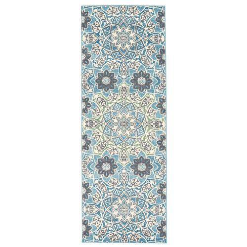 Room Envy Pismo 3 x 8 Aqua Indoor Floral/Botanical Mid-Century Modern Runner