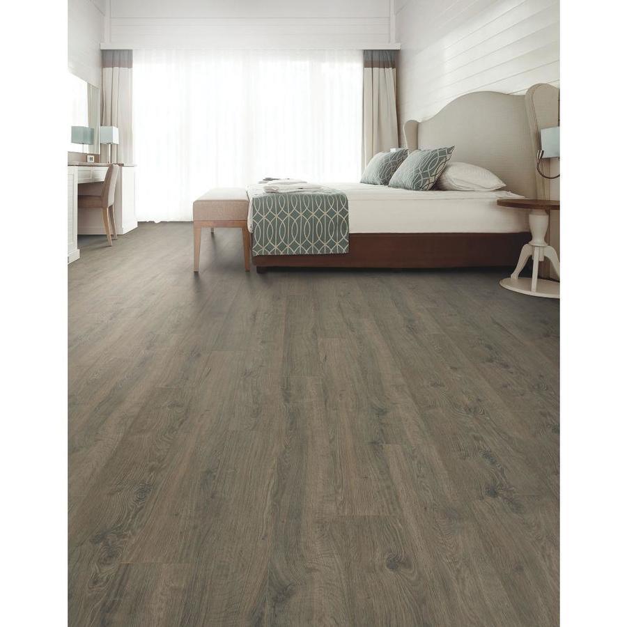 A medium brown floor featuring warm undertones that complement light, neutral wall colors Trends may come and go, but Quick-Step Studio floors are designed to complement any style dcor with natural color shading and grain This laminate floor features and attached underlayment pad saving you both time and money Can also be installed on walls to add warmth to rooms and style to spaces 10mm thickness for greater stability and sound control Easy to install locking system requires no glue and makes installing a laminate floor an easy DIY project - coordinated mouldings available Underlayment attached, but for enhanced performance we recommend Pergo Gold™ for increased thermal comfort and sound insulation plus it has a built in moisture barrier 6.14-in W x 3.93-ft L x 10mm thick planks cover 16.12-sq.ft FloorScore® certified and TSCA Title VI compliant