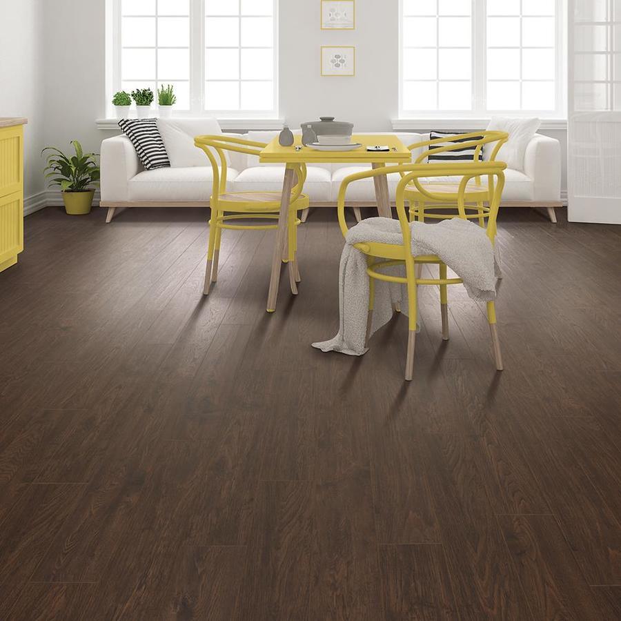 This dark brown floor complements lighter neutral walls and balances darker, bolder hues Trends may come and go, but Quick-Step Studio floors are designed to complement any style dcor with natural color shading and grain This laminate floor features and attached underlayment pad saving you both time and money Can also be installed on walls to add warmth to rooms and style to spaces 10mm thickness for greater stability and sound control Easy to install locking system requires no glue and makes installing a laminate floor an easy DIY project - coordinated mouldings available Underlayment attached, but for enhanced performance we recommend Pergo Gold™ for increased thermal comfort and sound insulation plus it has a built in moisture barrier 6.14-in W x 3.93-ft L x 10mm thick planks cover 16.12-sq.ft FloorScore® certified and TSCA Title VI compliant