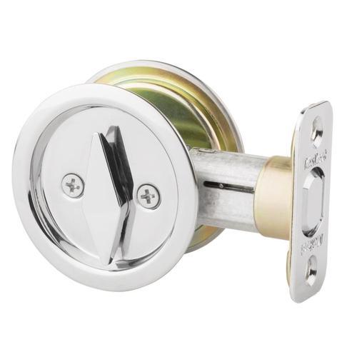 Round design eliminates the need to cut a new notch in door Latch has round corner faceplate Latch has 2-3/8 in backset Locking mechanism functions with turn piece on the interior of the lock Easily installs in minutes with just a screwdriver For use on interior doors where a privacy locking function is required, such as a bedroom or bathroom Lifetime mechanical and finish warranty