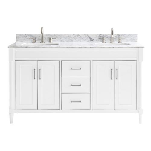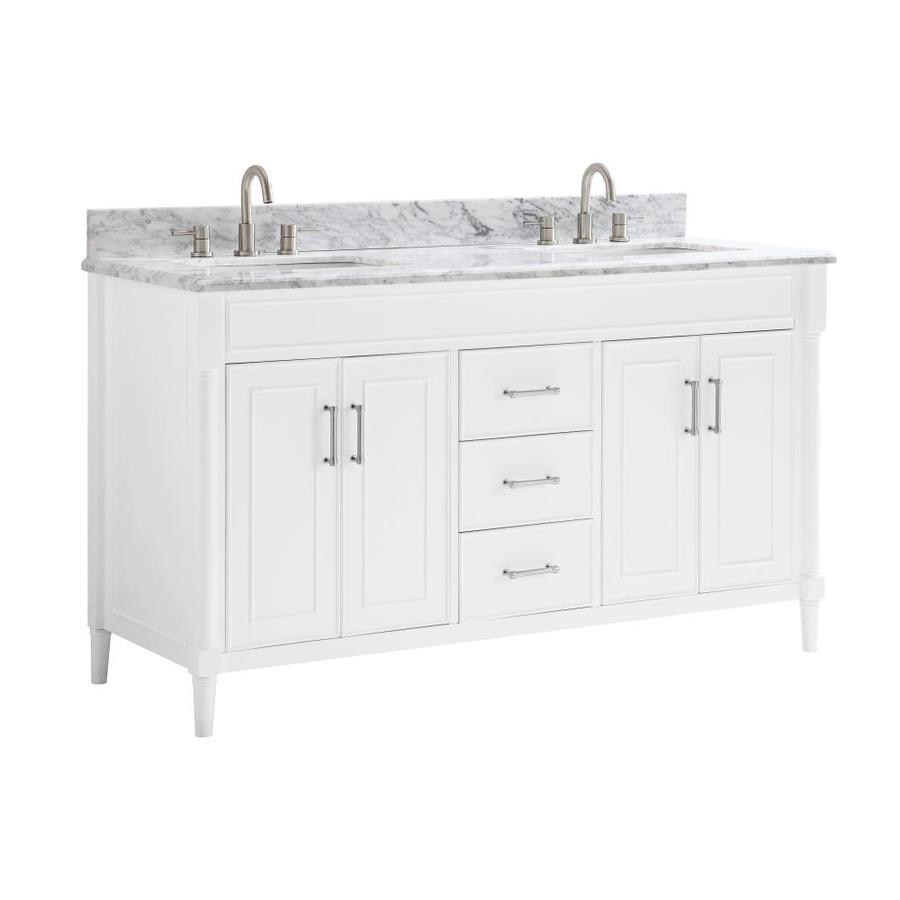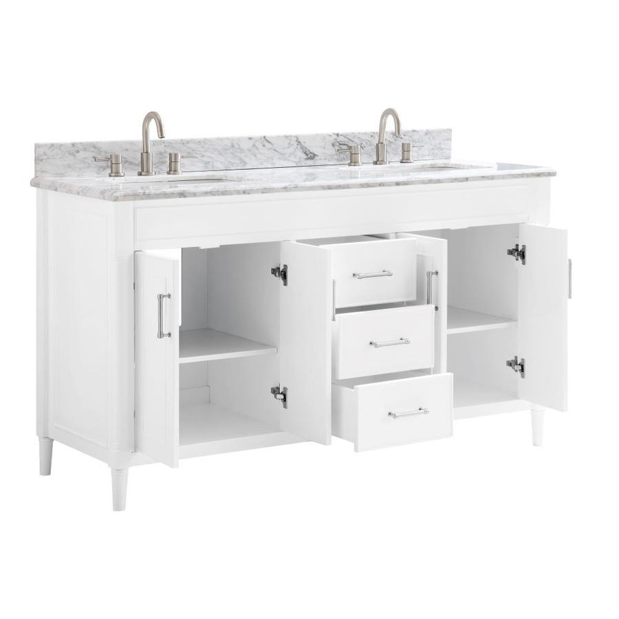 allen + roth Perrella 61-in White Double Sink Bathroom Vanity with Carrera White Natural Marble Top