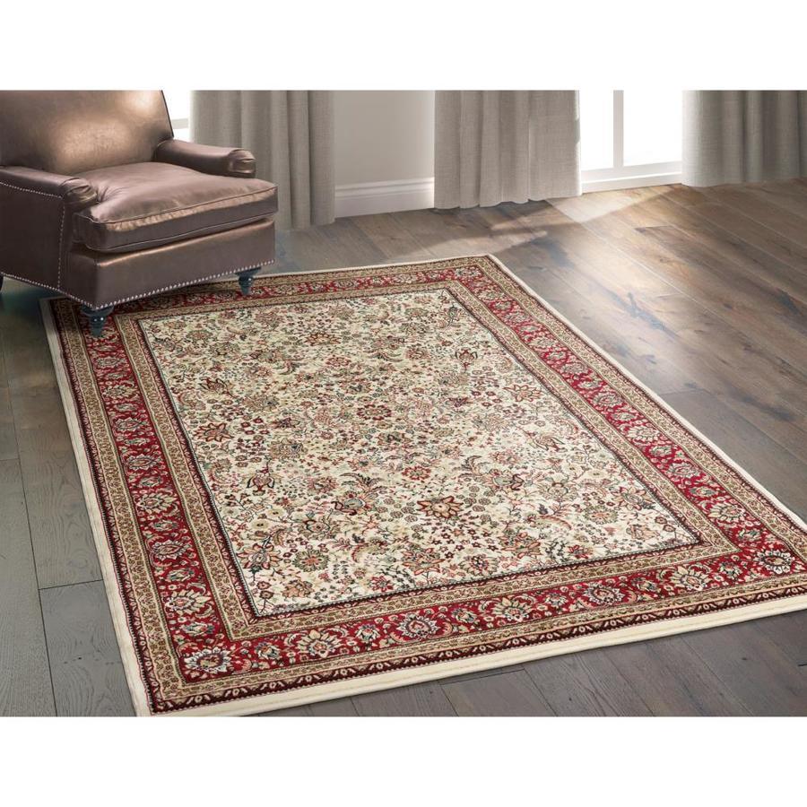 Koralin is a sophisticated updated traditional design with delicate detailing Machine woven of 100% polypropylene is inherently stain resistant, making it perfect for high traffic areas 0.3-in pile height offers lasting durability for easy cleaning Woven polypropylene backing, rug pad protects the life of the rug and flooring underneath (pad sold separately) Spot clean with mild detergent and vacuum regularly to keep rug looking like new Features an ivory background with red, and navy accents Adds a touch of class to any room of your choice 1-ft 10-in x 7-ft 6-in size is perfect for hallways and staircases