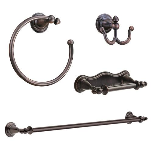 Kit includes 24-in towel bar, robe hook, towel ring, and toilet paper holder Tile/masonry-plastic or lead anchors plaster/drywall-toggle bolts recommend if wood blocking is not available Mounting hardware and mounting template included Coordinates with Delta's Victorian Collection Venetian Bronze finish