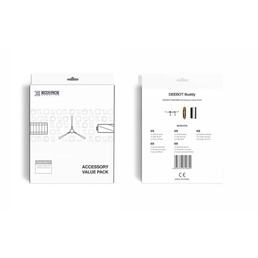 Includes 1 main brush, 4 side brushes, and 3 high efficiency filters ECOVACS Robotics recommends on average changing the main brush once, side brushes twice, and filters three times a year Compatible with the DEEBOT OZMO 610 Robotic Vacuum and Mop Cleaner No additional tools are necessary for installation