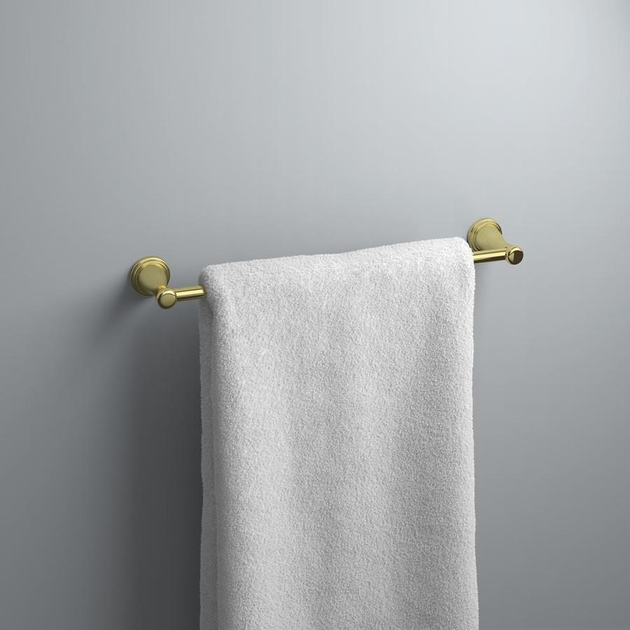 Wall mounted design for bathroom convenience and organization The glossed surface and vibrant warmth of polished brass provides a pop of color against neutral tones for an eye-catching highlight to your dcor Has durable, long-lasting finish to help prevent corrosion, tarnish or discolor, so you can enjoy a look you love for life Zinc die cast construction provides reliability and durability Includes 18-in towel bar, toilet paper holder and towel ring to complete your space Complete your look with complimenting pieces from the Bayside bath collection Features a set screw mounting system for added durability Instructions and mounting hardware included for easy installation Perfectly matches the Peerless Bayside faucet