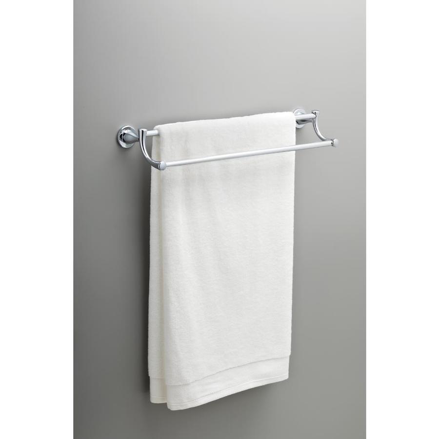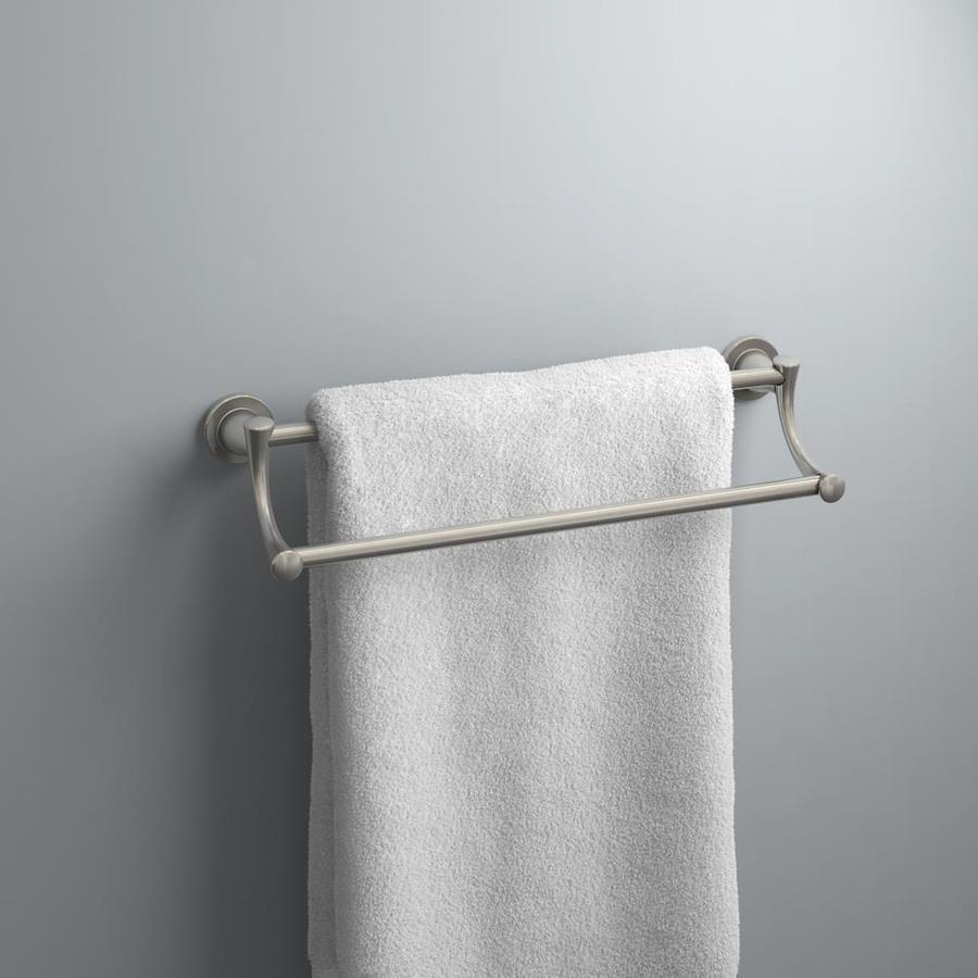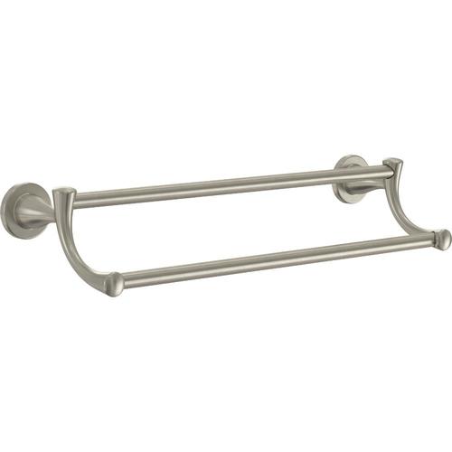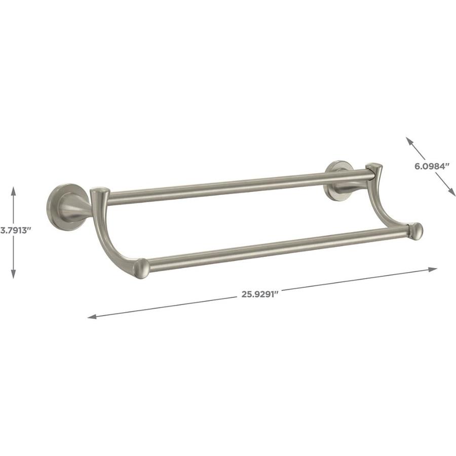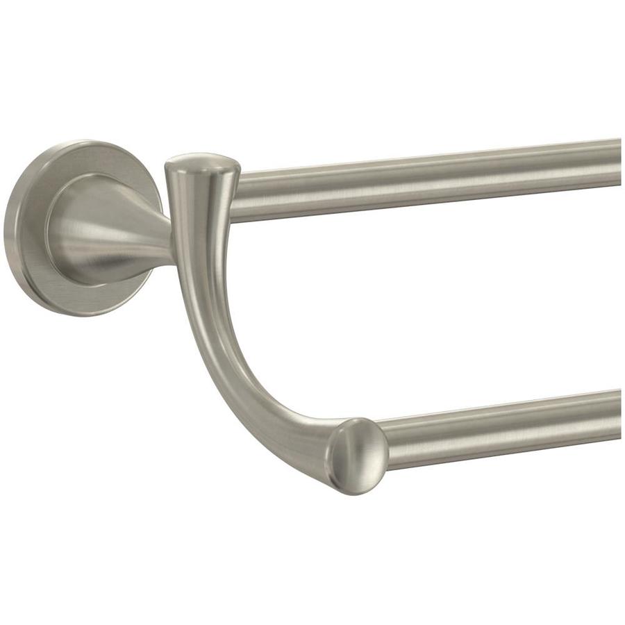 Wall mounted design for bathroom convenience and organization Brushed nickel has subtle warm undertones and a low-gloss surface for an alluring, neutral addition to your bath Has durable, long-lasting finish to help prevent corrosion, tarnish or discolor, so you can enjoy a look you love for life Zinc die cast construction provides reliability and durability 24-in Double Towel Bar features two towel bars for added storage and perfectly holds two towels or multiple hand towels Coordinates beautiful with other Peerless brushed nickel accessories Set screw mounting system to increase durability Included mounting hardware and guide to make installation simple Coordinates beautifully with many brushed nickel bath accessories