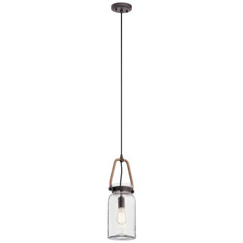 Kichler Clove Hitch Weathered Bronze Farmhouse Clear Glass Cylinder Pendant Light