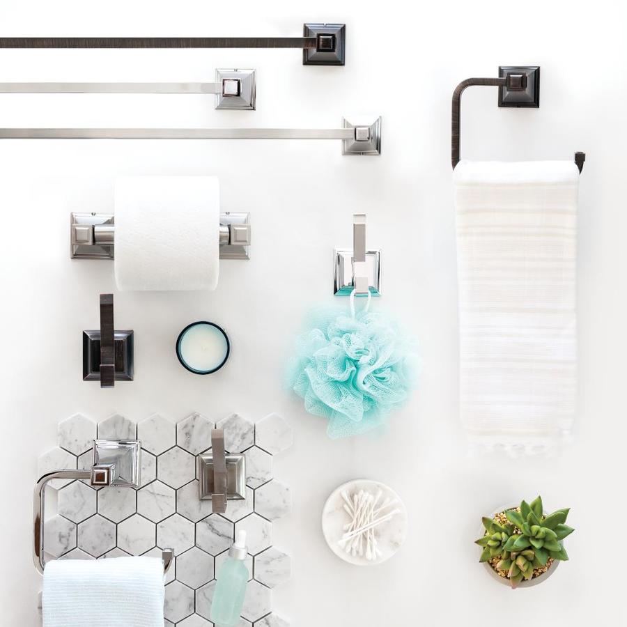 Wall mounted design for bathroom convenience and organization Chrome offers a stunning gloss and innate versatility by pairing crisp lines and bright whites Has durable, long-lasting finish to help prevent corrosion, tarnish or discolor, so you can enjoy a look you love for life Made from high-quality zinc die-cast for long-lasting durability Perfect for hand towels for easy access near the sink Coordinates perfectly with the rest of the Lynwood bath collection (sold separately) Features set screw mounting system for added durability Included mounting template and hardware takes the guesswork out of installation Versatile design complements many faucet styles (sold separately)