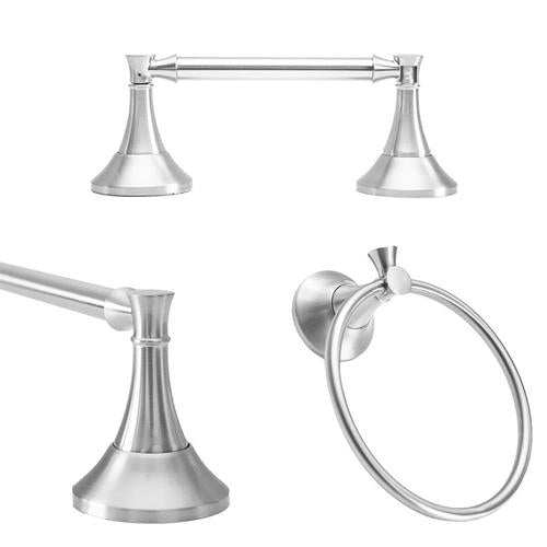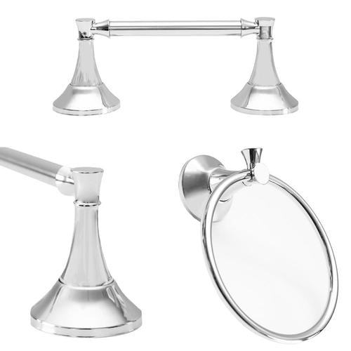 Set includes: 24 inch towel bar, toilet paper holder and towel ring Installation instructions included with limited lifetime warranty EAZEE wall mount system Chrome finish