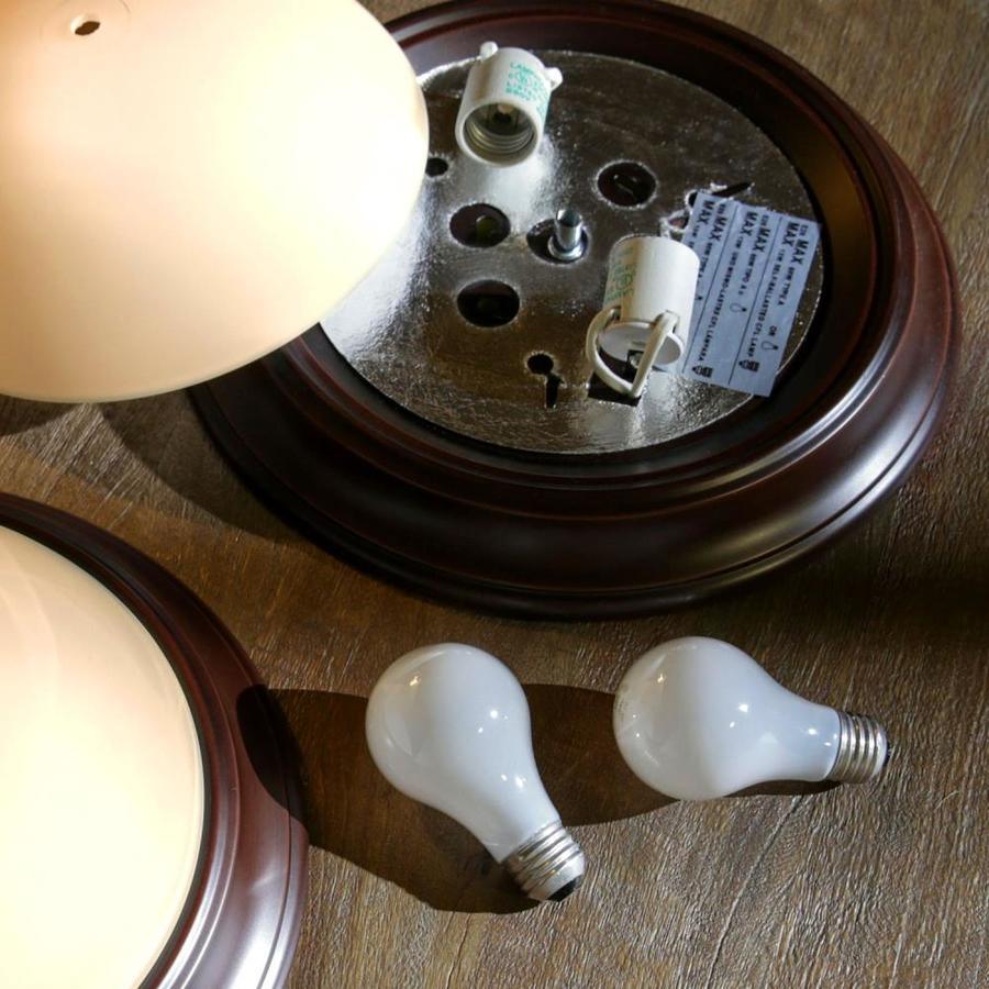 Requires two 60-watt A19-size medium base incandescent bulbs, not included Protective oil rubbed bronze finish Decorative alabaster glass shade Rated for damp areas