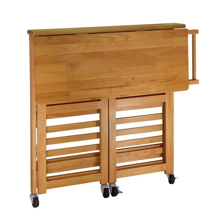 Folds up for easy transport and storage, 5.08in D Four wheels for easy mobility, two of which lock Features towel bar and knife block Static weight capacity: 25lbs per shelf