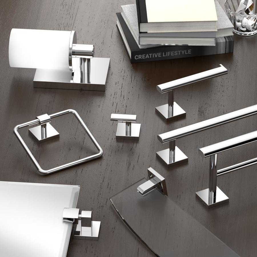 Bath hardware set includes 24-in towel bar, towel ring, tissue holder and robe hook Complete bath hardware upgrade, perfect for any bathroom All mounting hardware and instructions included Modern style