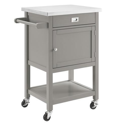 Linon Gray Wood Base with Stainless Steel Metal Top Kitchen Cart (18-in x 25.2-in x 36-in)