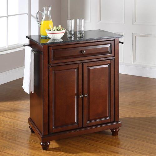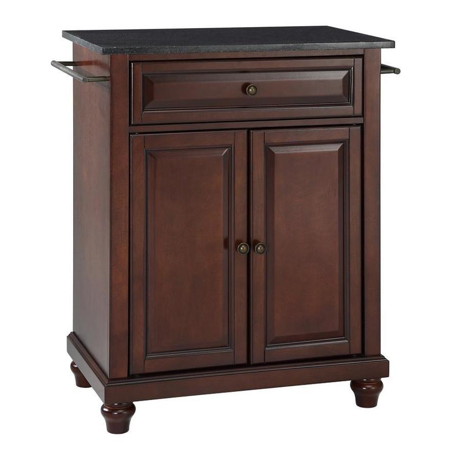 The beautiful raised panel doors and drawer fronts provide the ultimate in style to dress up any culinary space The deep drawer is great for anything from utensils to storage containers Behind the doors is an adjustable shelf and an abundance of storage space Solid black granite countertop Features built-in towel bars Decorative vintage mahogany finish 90-day limited warranty