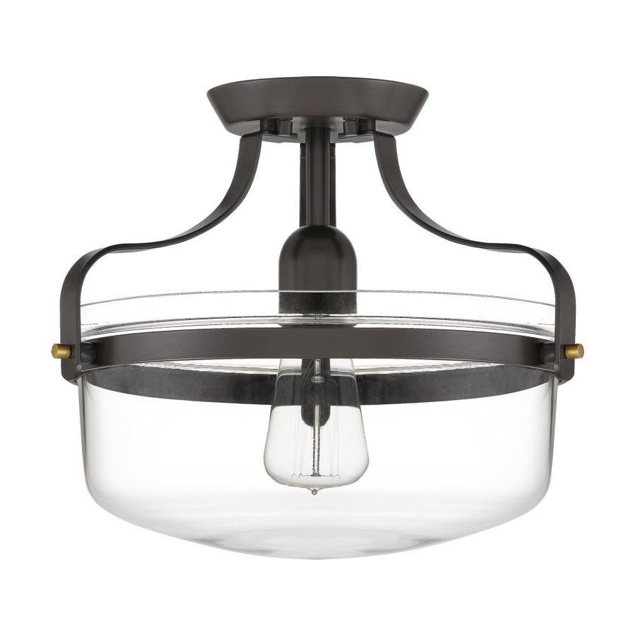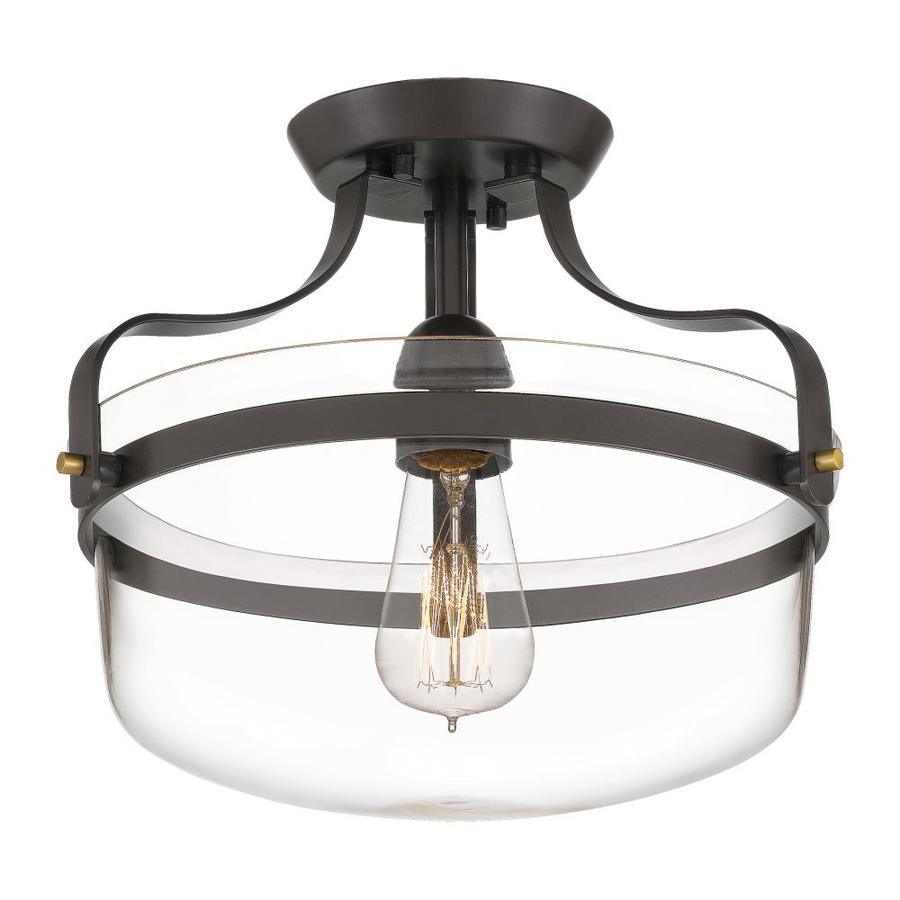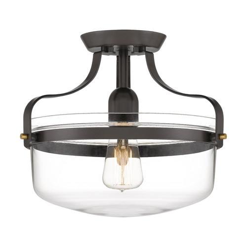 Quoizel Maddock 12.88-in Bronze with Brushed Brass Farmhouse Incandescent Semi-flush Mount Light
