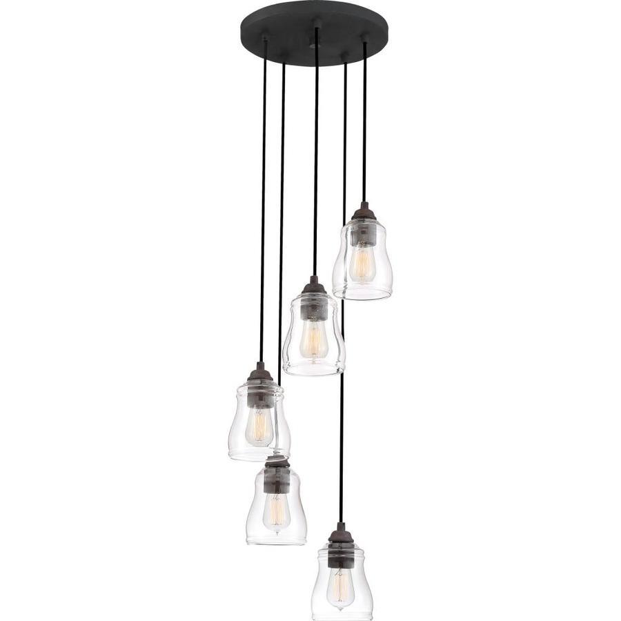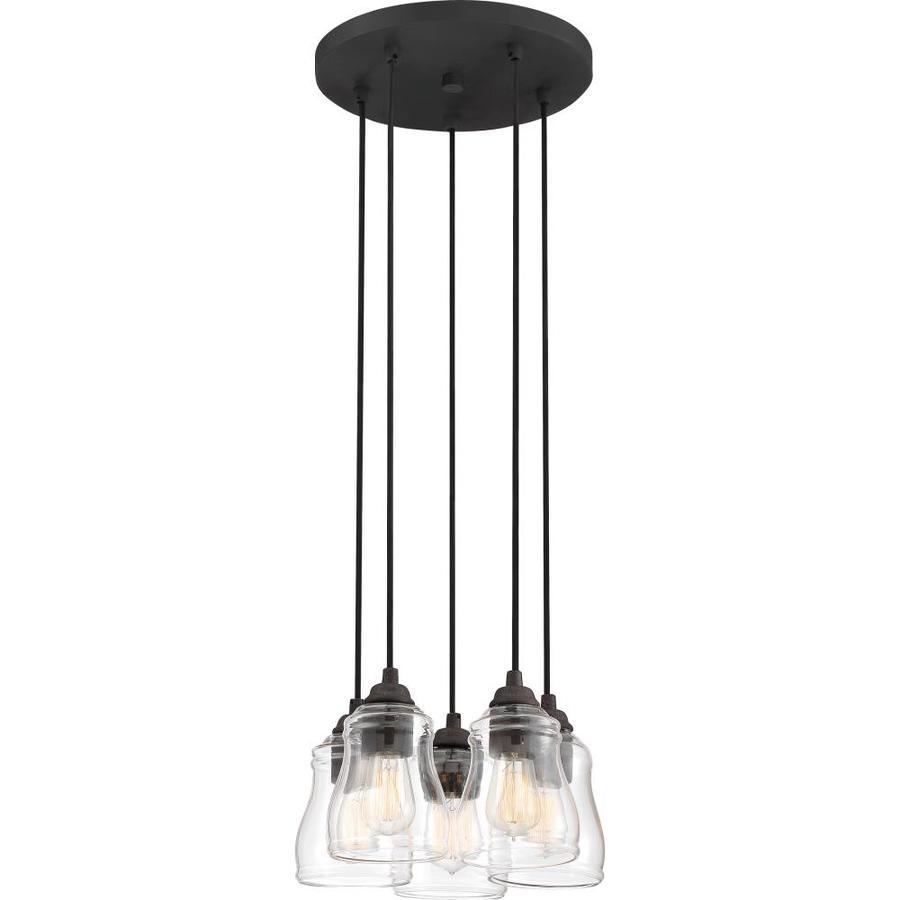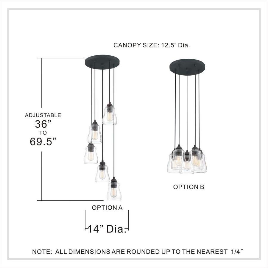 Hand-painted textured matte black finish Mouth-blown clear glass maximizes the ambient light Uses five 60 watt max wattage medium base bulbs (not included) Light is dimmable, so you can create your desired ambiance Hardware included for adjustable hanging heights from 8 up to 10 foot ceilings Great for farmhouse style decor