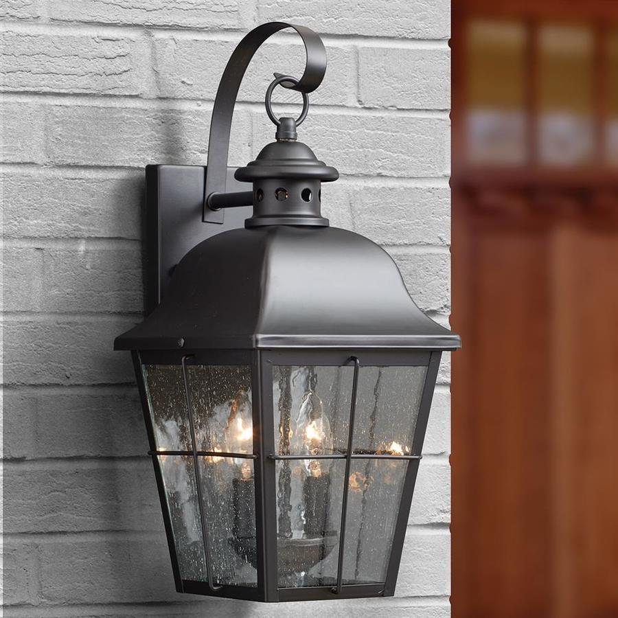 Features clear seedy glass that diffuses the light in a soft, tranquil way Rich black finish completes the traditional look ETL listed for wet location usage Backplate width is 5-in