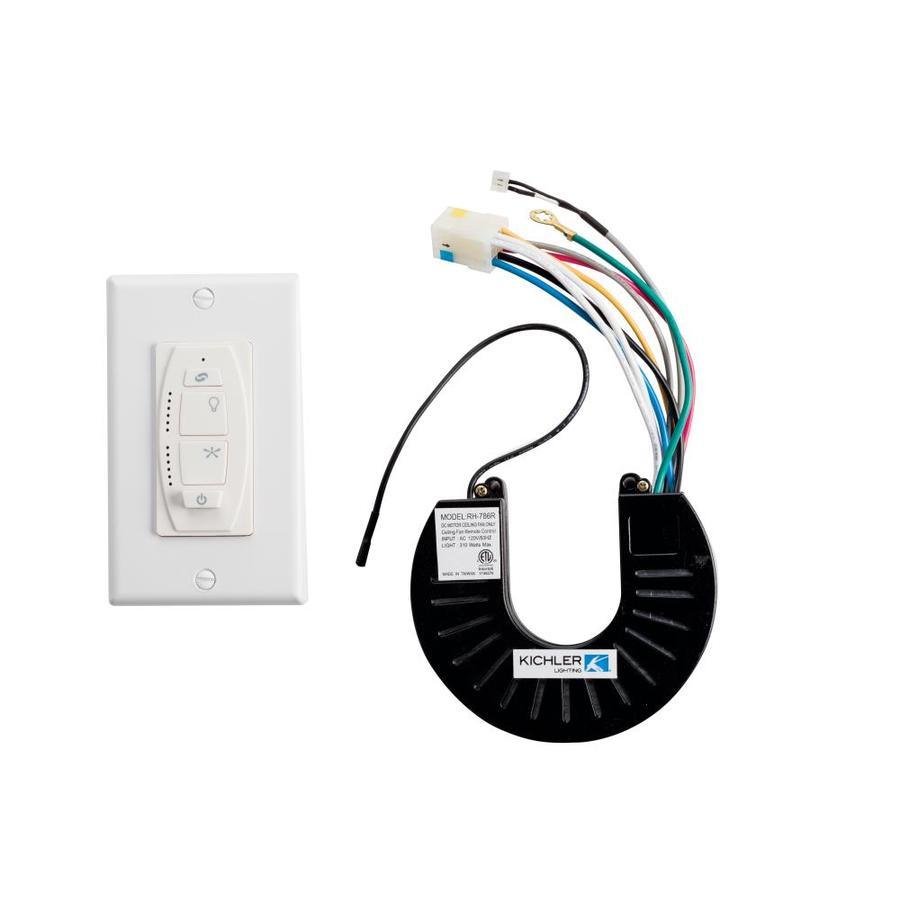 What's in the Box: fan blades, blade support plates, canopy and ceiling mounting bracket, ball/downrod assembly, coupling cover, motor assembly, light plate, LED light kit, glass shade assembly, wall Transmitter, washers, screws