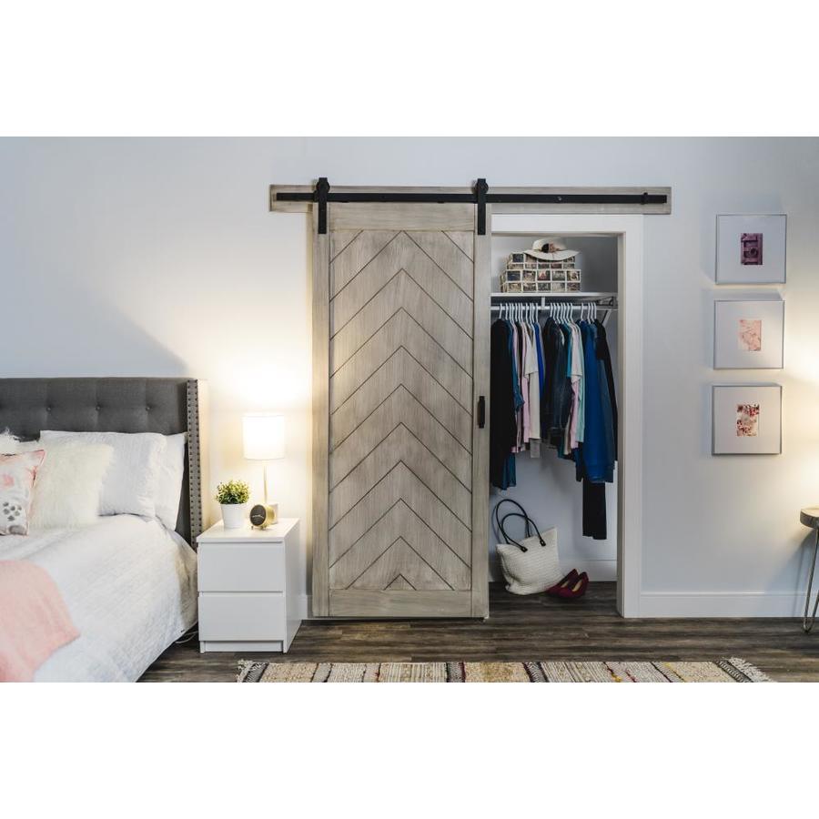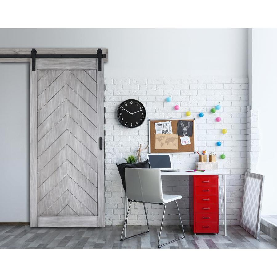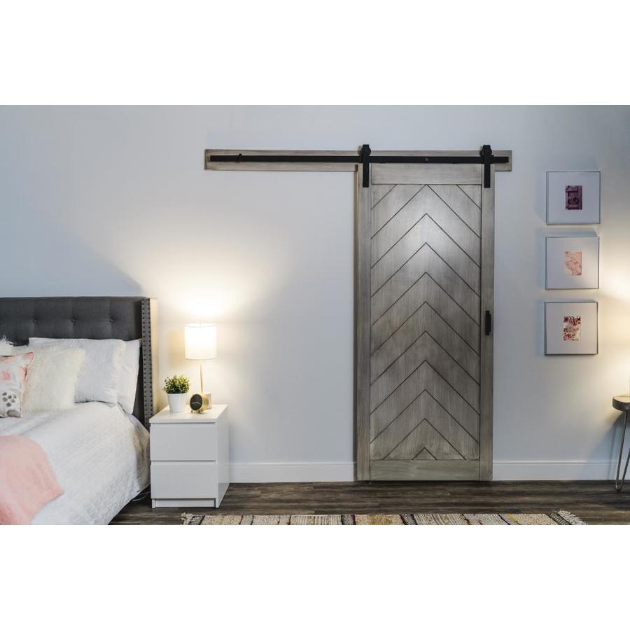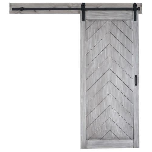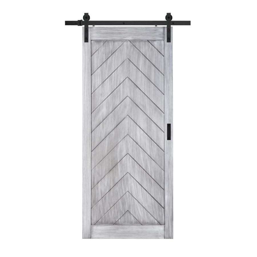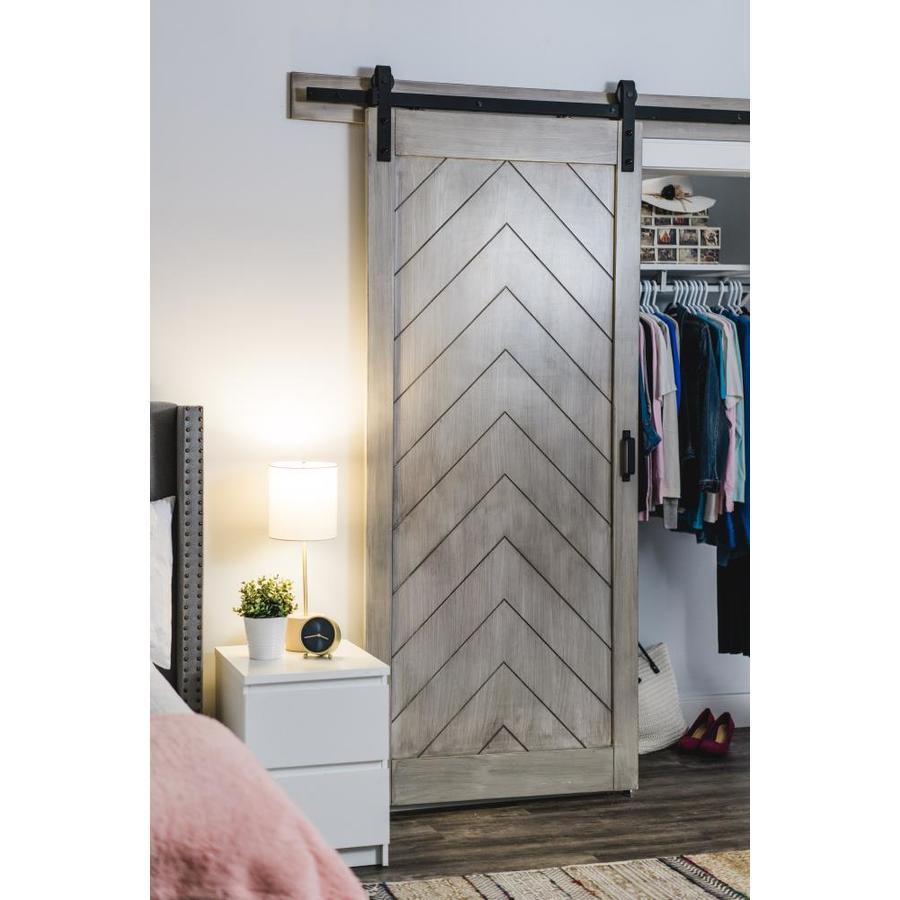ReliaBilt 36-in x 84-in Satin Nickel Gray Stain Herringbone Prefinished Wood Single Barn Door (Hardware Included)