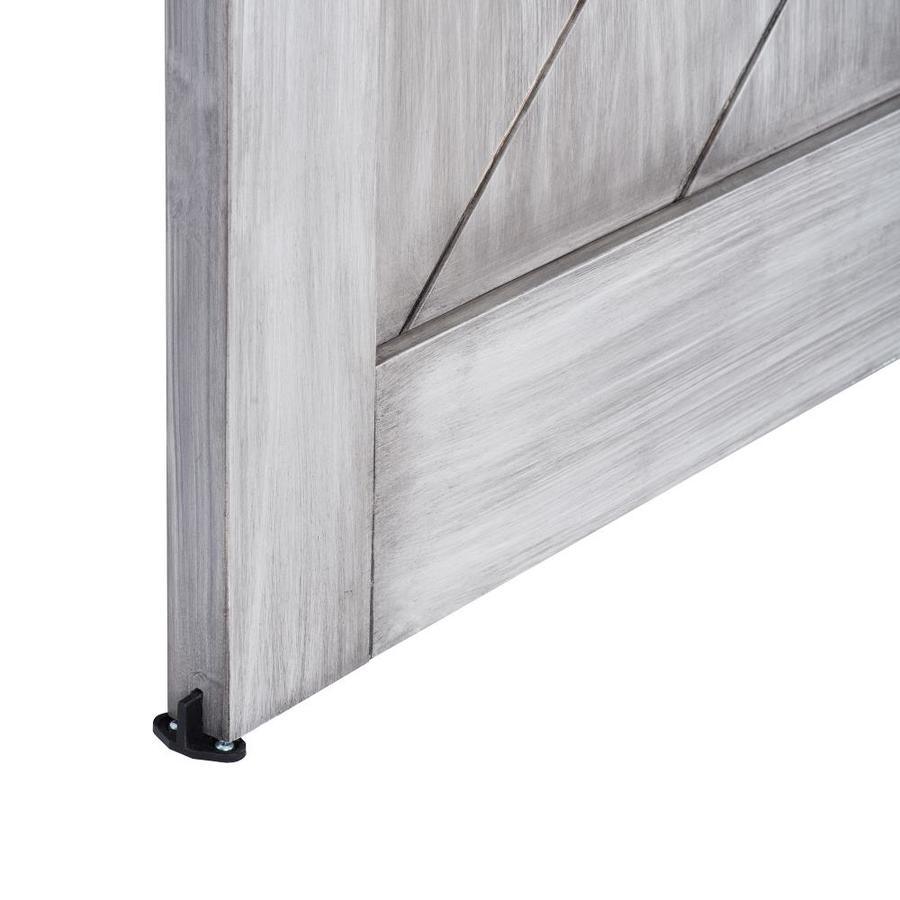 Barn door kit includes: rustic matte black hardware, track, handle, wood backer and barn door Pre-installed Easy Glide Soft Close mechanism for a quieter and smoother closing action Trackless door design keeps floor opening clear and hazard-free Ready-to-assemble, pre-drilled mounting holes and bottom-groove guide Ideal for closets, passage ways and as room dividers Fits openings between 28 In - 34 In wide and opening height of 80-1/2 In Actual panel: 36 In x 84 In x 1-3/8 In Pre-finished doors are manufactured in a way that requires no further painting or staining The manufacturing materials used create a realistic and permanent finish that cannot be modified